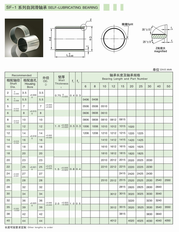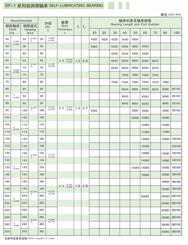 SF-1 系列自潤(rùn)滑軸承尺寸表